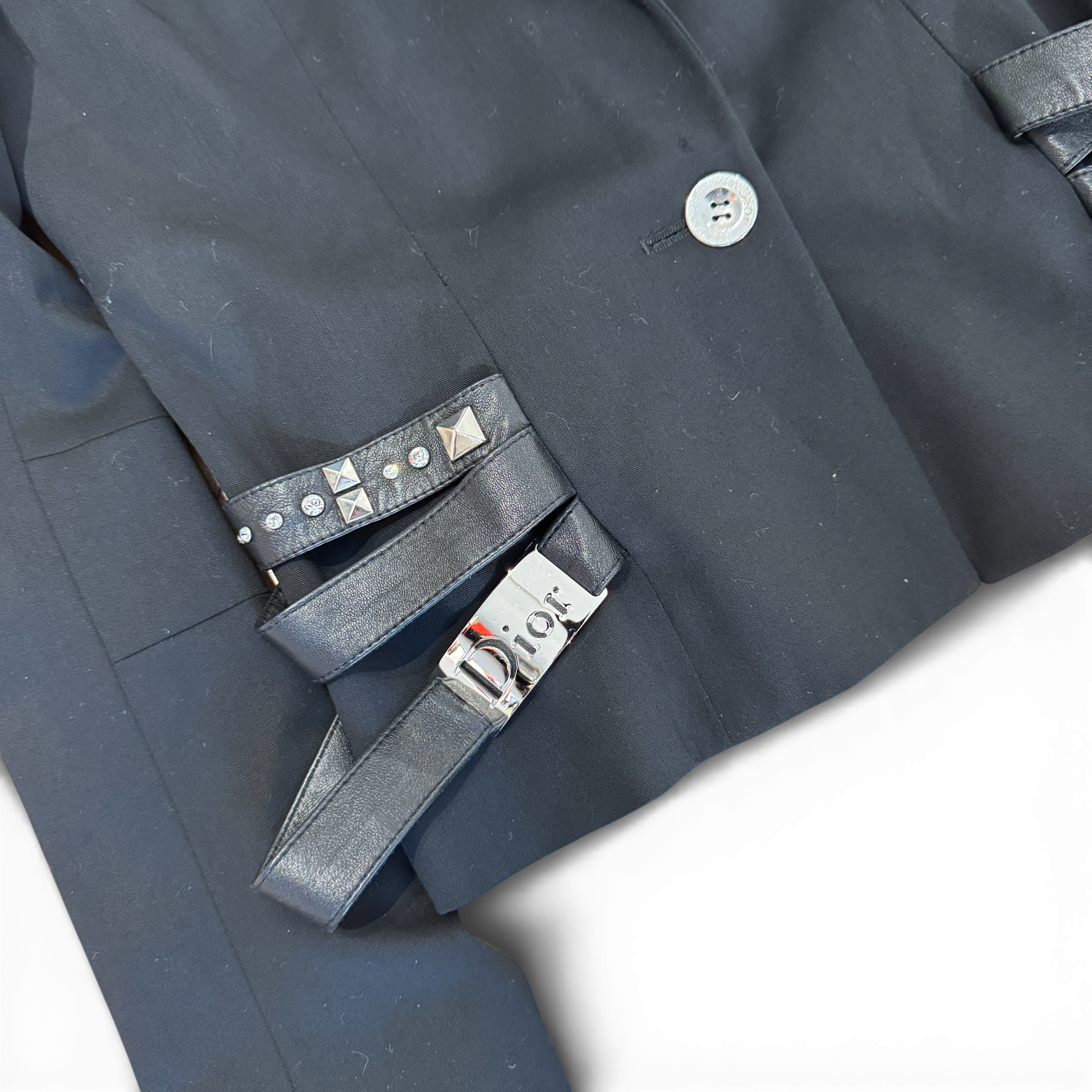Christian Dior AW04 by John Galliano Studded Leather Strap Black Blazer