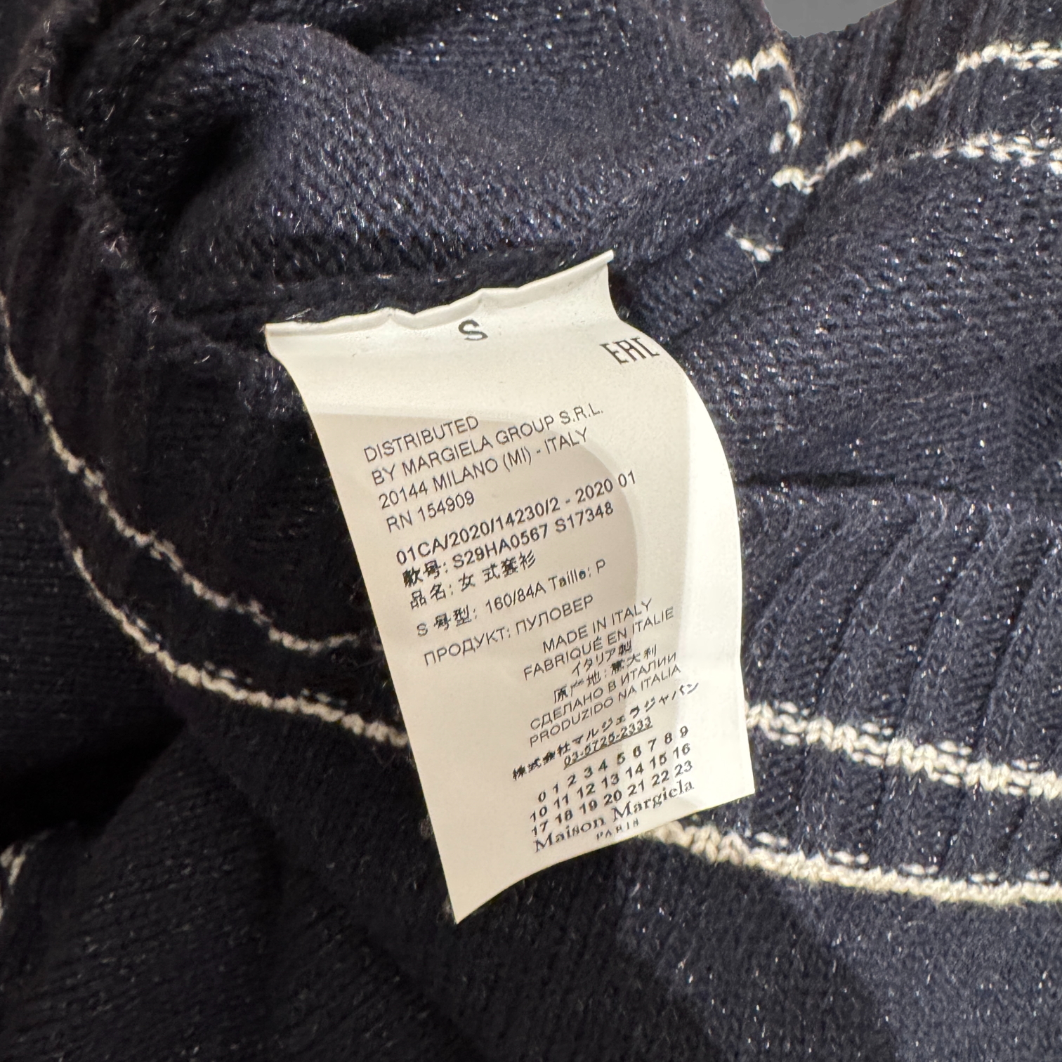 Maison Margiela SS20 Navy Metallic Varsity Cropped Knit Sweater